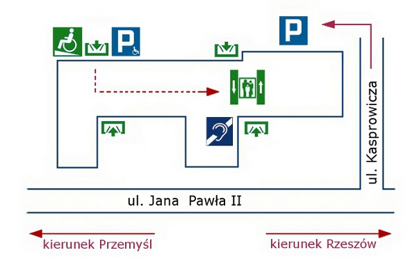 Punkt informacyjny dla osób niesłyszących i niedosłyszących znajduje się w Biurze Podawczym - parter pokój nr 1, w pokoju zainstalowano pętlę indukcyjną.